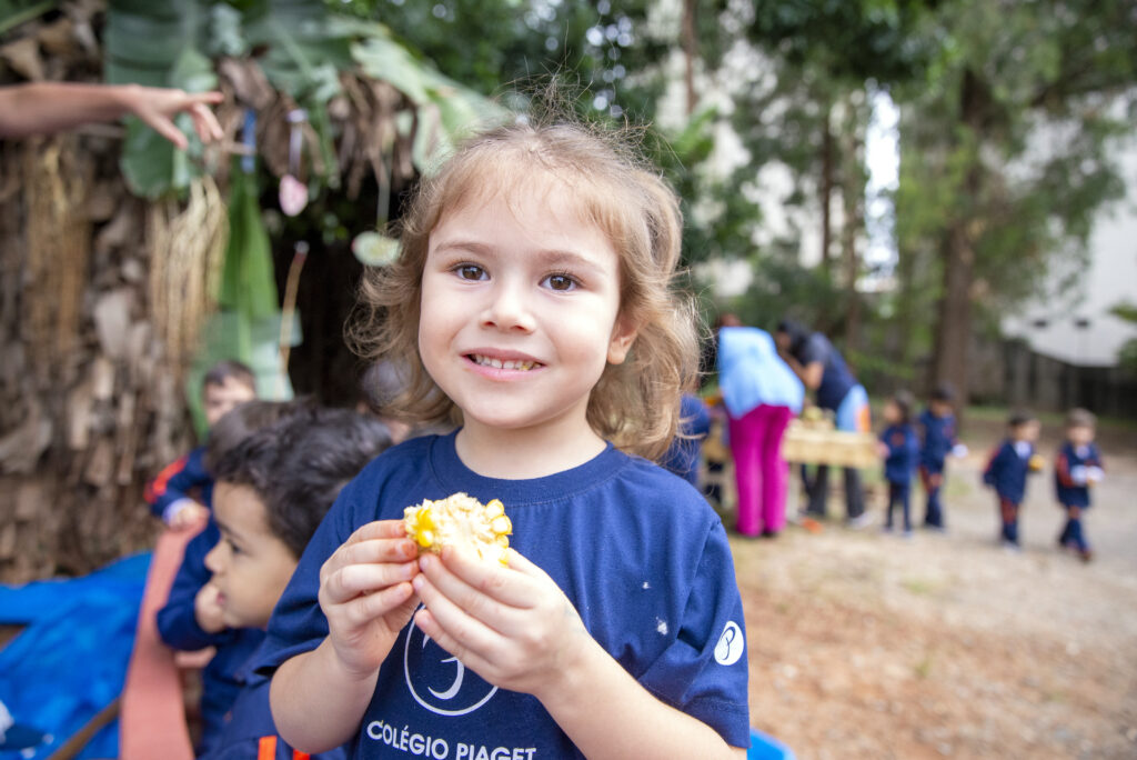 Para degustação, as professoras serviram milho cozido, que os alunos adoraram.